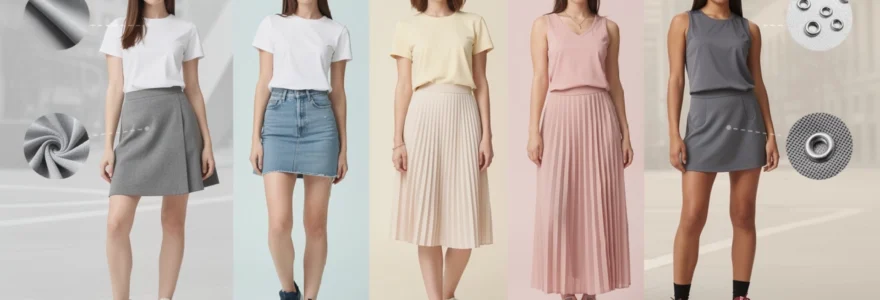 L’harmonie des volumes s’exprime particulièrement bien avec des jupes trapèze midi associées à des sneakers aux lignes imposantes. Cette combinaison fonctionne remarquablement pour les morphologies en poire, car elle élargit visuellement le haut du corps tout en respectant l’équilibre général de la silhouette. Les matières structurées comme le néoprène ou les toiles techniques renforcent cet effet d’équilibrage des proportions.